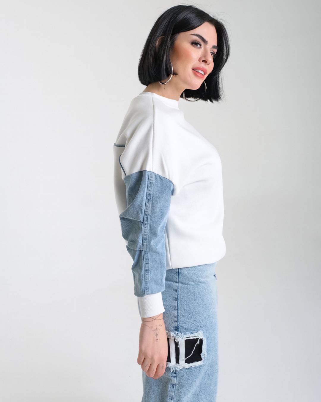 Oversize baskılı trend sweatshirte bayılacaksınız! Oversize durmasını istiyorsanız kendi bedeninizi, daha fit durmasını istiyorsanız kendi bedeninizi alabilirsiniz.